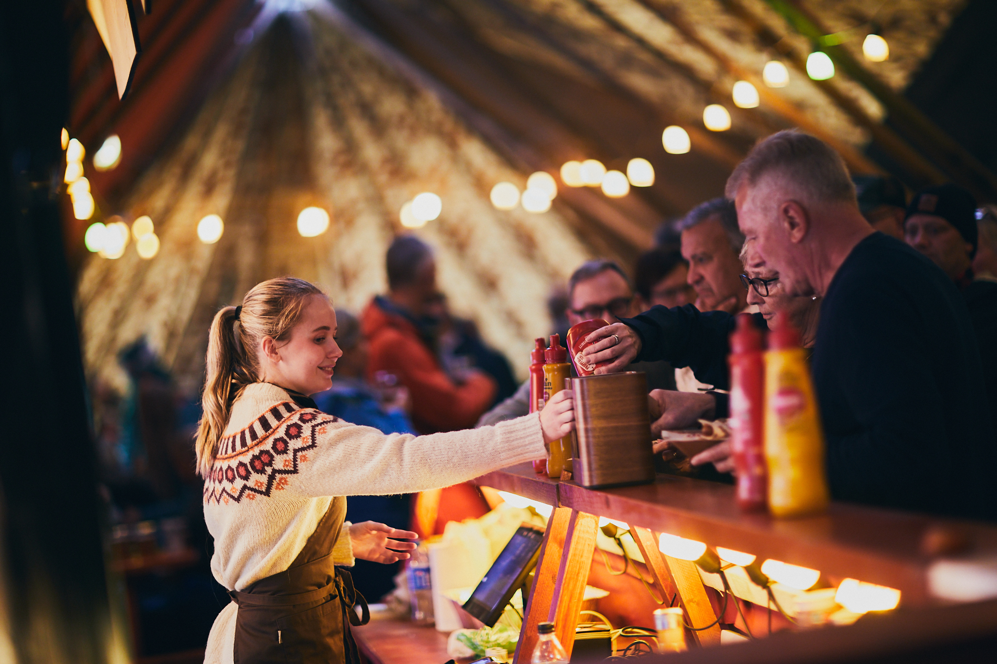 200 gram rakfisk som serveres i lefse med purreløk og rømme